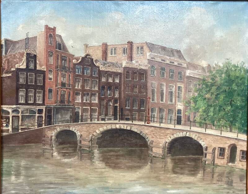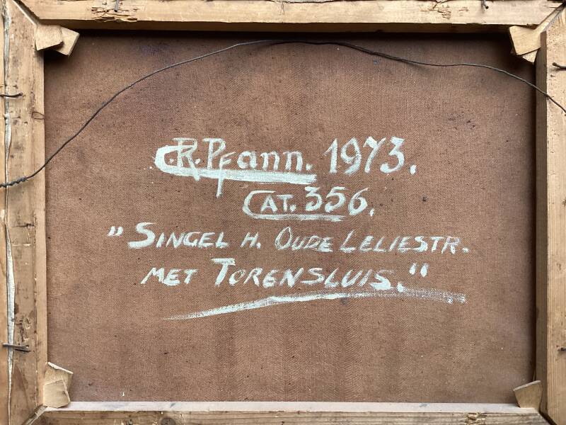 Als eerste liet zij ons een schilderij zien die van haar ouders is geweest. Het betreft een olieverfschilderij "Singel H. Oude Leliestraat met Torensluis" uit 1973 Cat 356, afm. 50 x 40 cm.